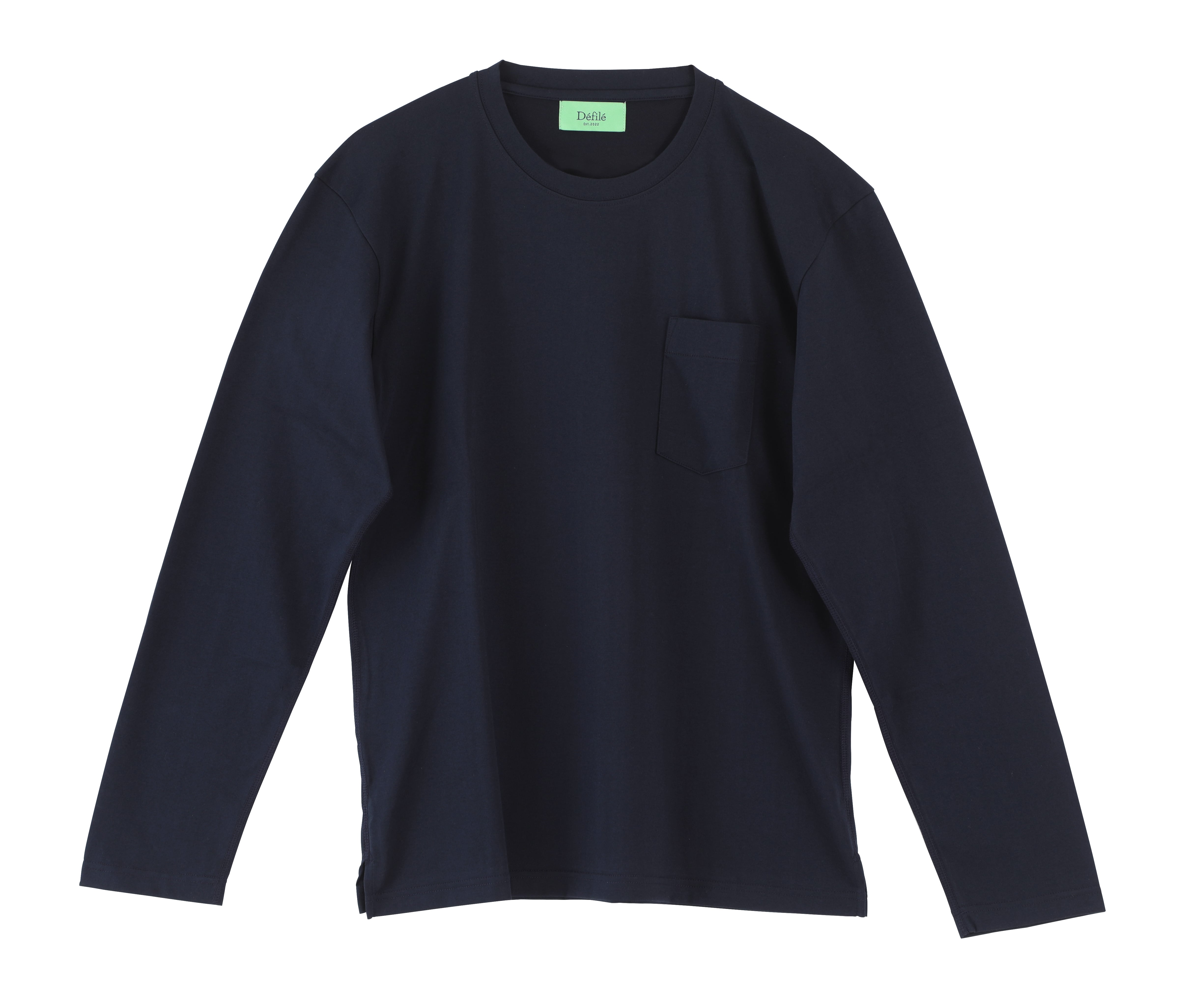 後ろ衿高を一般的なTシャツより高くし、首元の収まり感と重ね着の衿汚れをケアします。